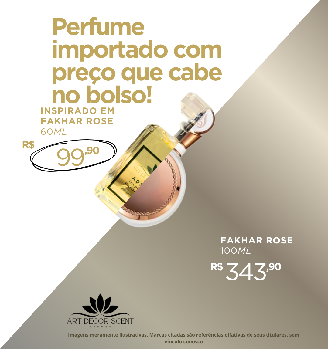 Descubra a elegância e a sofisticação do Perfume Art Decor Scent, inspirado na icônica fragrância Fakhar Rose. Com 60ml de puro encanto, este perfume importado é perfeito para quem busca um aroma marcante com preço que cabe no bolso. Com notas florais intensas e um toque oriental, ele proporciona uma experiência olfativa única que exala charme e personalidade. Sua embalagem compacta e prática permite que você leve essa fragrância exclusiva para qualquer lugar, garantindo que você esteja sempre envolto em um delicioso perfume. Ideal para ser usado em ocasiões especiais ou no dia a dia, o Perfume Art Decor Scent é a escolha perfeita para quem valoriza a qualidade e a beleza em cada detalhe. Aproveite também a relação custo-benefício inigualável, pois enquanto a fragrância original de 100ml custa R$ 343,90, a nossa versão de 60ml está disponível por apenas R$ 99,90. Não perca a oportunidade de se sentir confiante e elegante com um perfume que traduz a essência da beleza e da feminilidade.