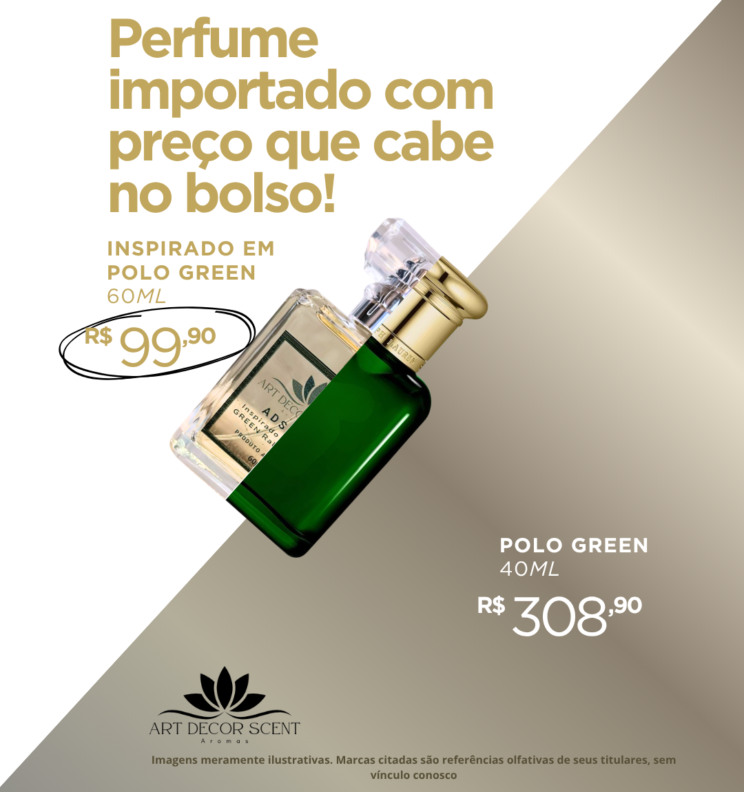 Descubra o Perfume Importado Art Decor Scent, inspirado na icônica fragrância Polo Green. Com 60ml de puro frescor, este perfume é a escolha perfeita para quem busca sofisticação e praticidade. Sua embalagem compacta com preço que cabe no bolso, permitindo que você leve essa essência marcante para onde for. Com notas verdes e amadeiradas, proporciona uma sensação revigorante que combina perfeitamente com o seu estilo de vida ativo. Ideal para o uso diário, seu aroma envolvente é perfeito tanto para ocasiões casuais quanto para momentos especiais. Ao escolher o Perfume Art Decor Scent, você também opta por uma alternativa acessível ao preço de R$ 99,90, comparado ao valor de R$ 308,90 do Polo Green original. Experimente e sinta a diferença!